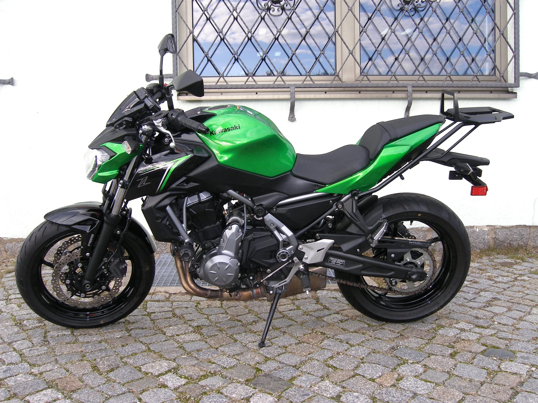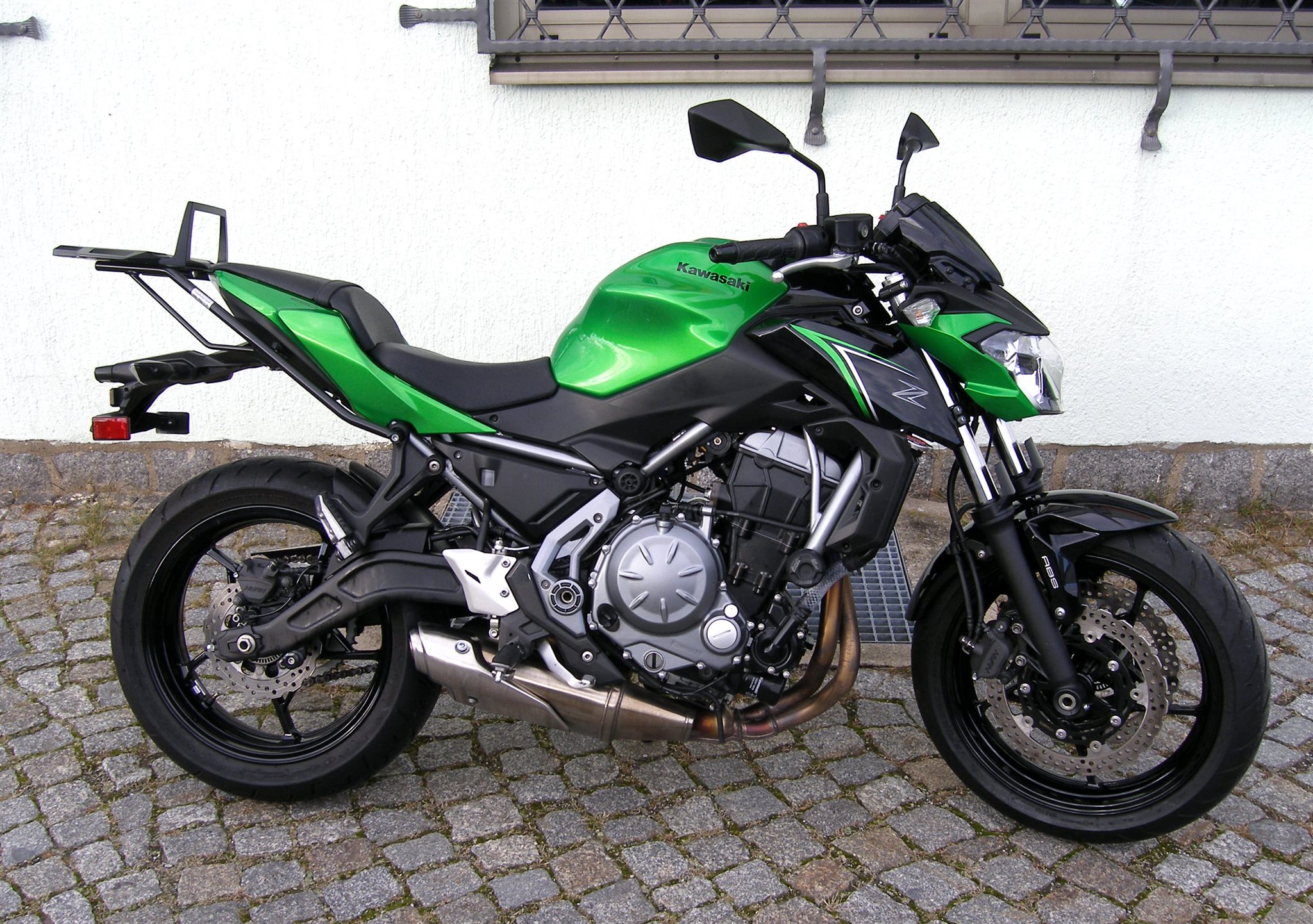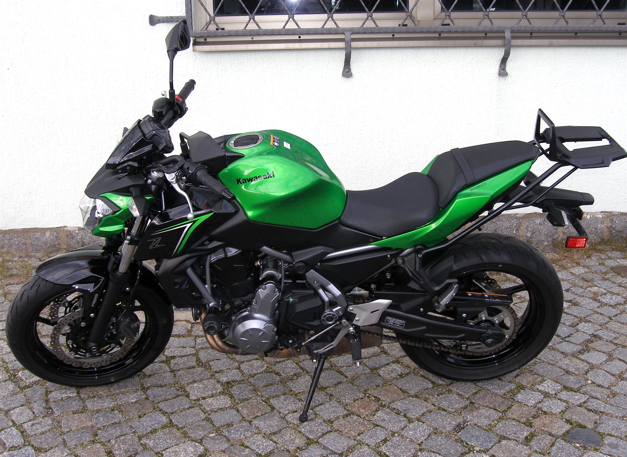 Die Z650 ist technisch und optisch in einem sehr guten Zustand, sie hat GSG-Mototechnik Sturzpads und einen Topcase Träger von Hepco & Becker.