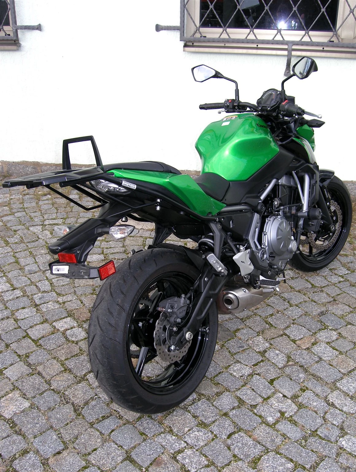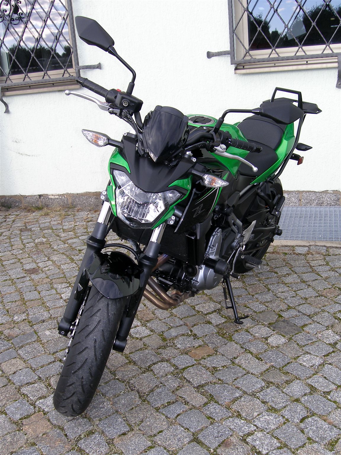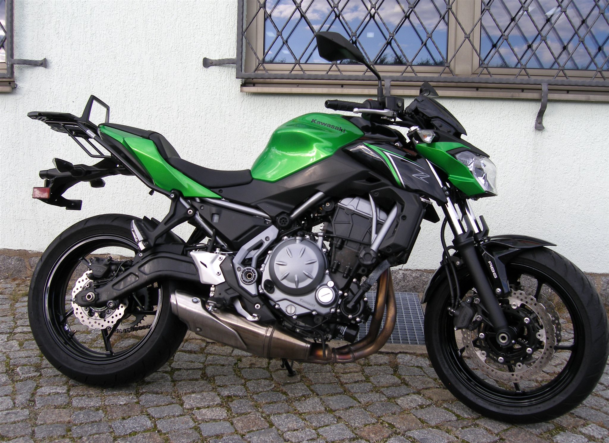 Die Z650 ist technisch und optisch in einem sehr guten Zustand, sie hat GSG-Mototechnik Sturzpads und einen Topcase Träger von Hepco & Becker.